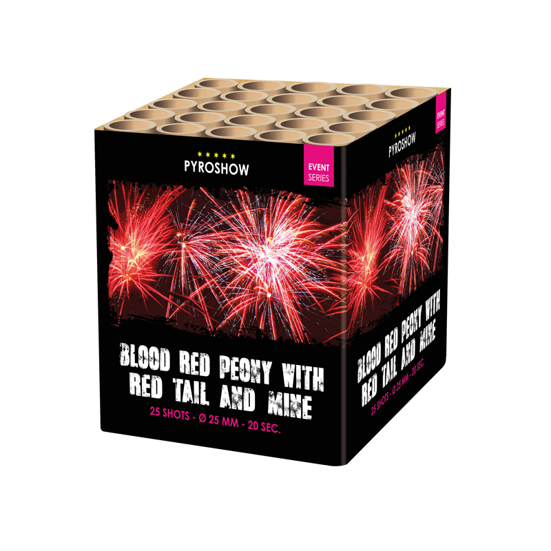 Blood Red Peony w.Red Tail and Mine Goedkoop vuurwerk kopen bij Vuurwerkwinkel Arnhem